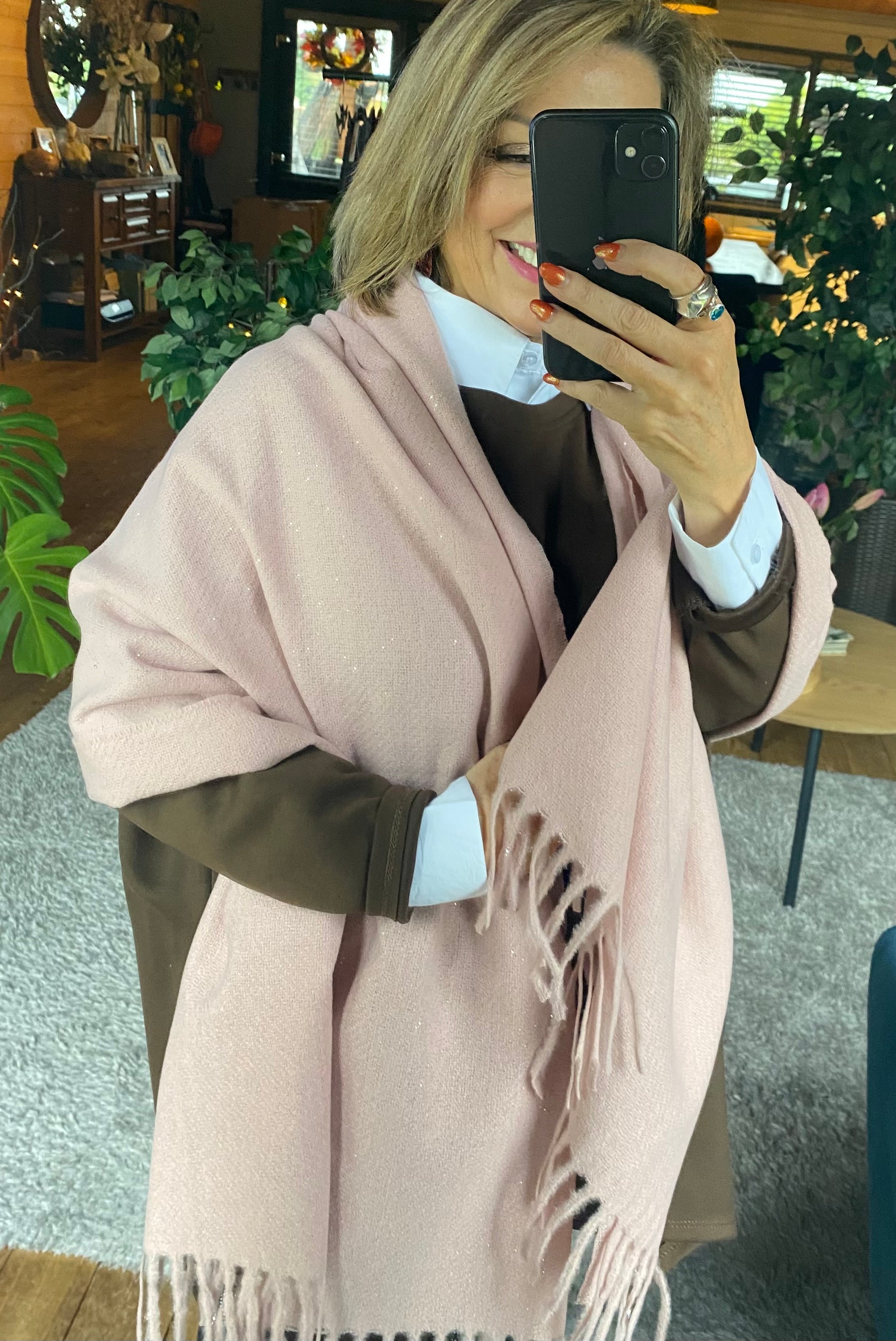 Wrap yourself in this soft shimmering luxury Pale Pink Sparkle scarf. The delicate pink hue adds a touch of femininity, while the subtle sparkle adds a touch of glam to any outfit. Embrace effortless elegance and elevate your look with this must-have accessory.