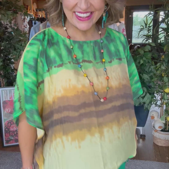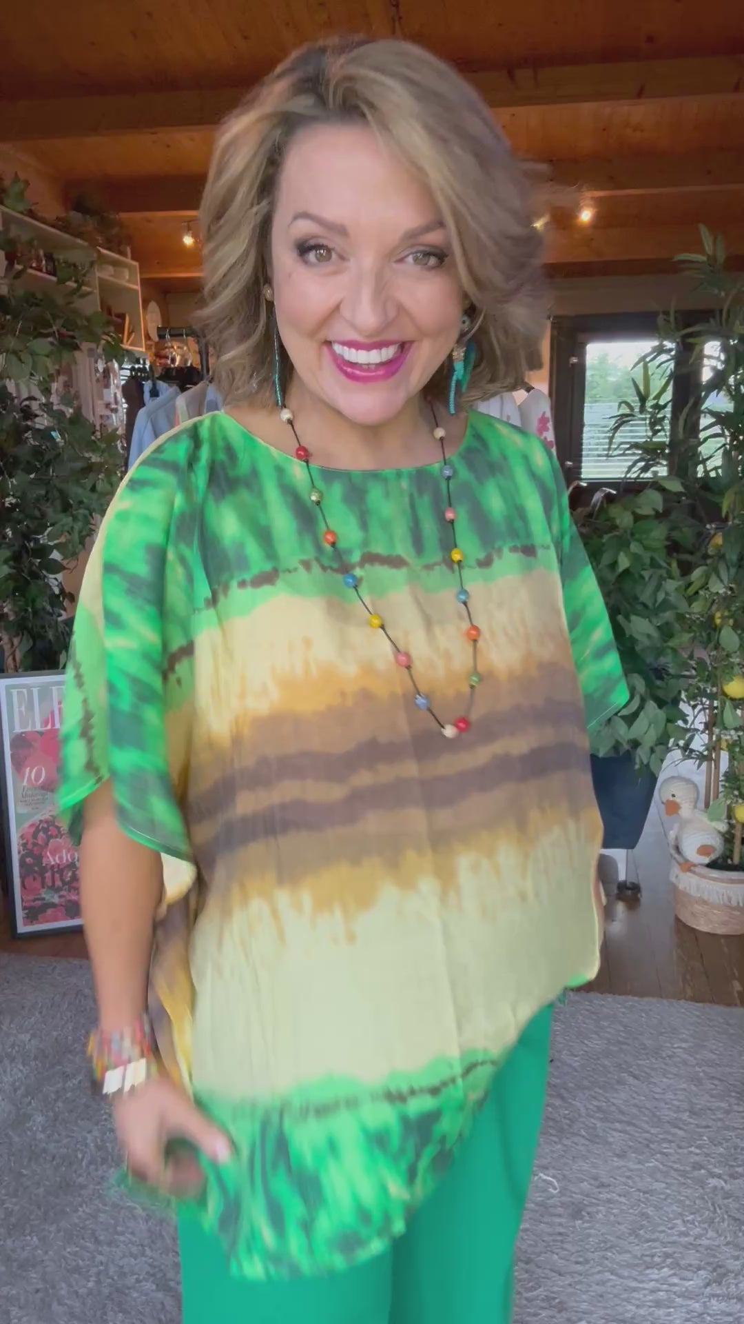A light Spring-green floaty top crafted from airy,semi sheer fabric. Designed to fall softly on the body that moves beautifully with every step. Perfect for Spring and Summer styling. I am size 12 and and wearing size S/M which will fit from size 12-16/18.I’m wearing my own vest top underneath 💚