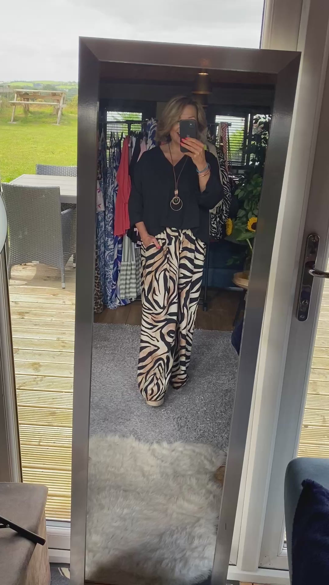Step up your style with this stunning Zebra Print wide leg trousers! Made with a comfortable elastic waistband and pockets for convenience, the shades of brown, black, and ivory give these trousers a luxurious and elegant touch. Perfect for any occasion, these trousers will add a bold statement to any outfit. The trouser length is long so if you’re between 5’3-5’8 you should be fine. As I love this trouser so much I’d be very happy to have the hem taken up😊